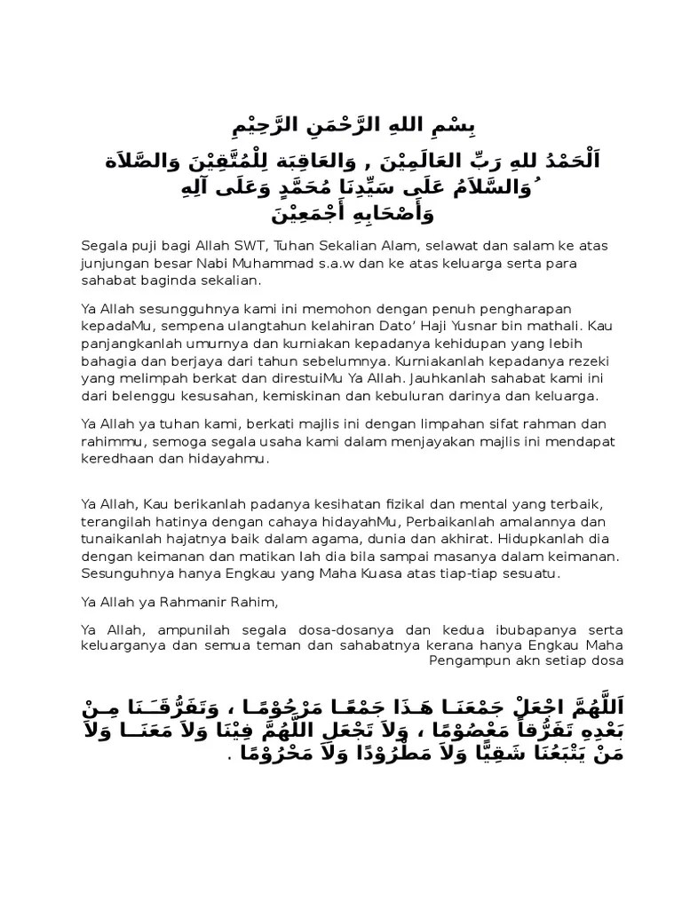 Contoh teks doa untuk sahabat sempena majlis hari lahir. Kebaikan menyambut hari lahir ucapan selamat hari jadi atau sanah helwah pasti tidak lengkap sekiranya tiada sambutan majlis doa hari lahir . Himpunan doa, jpn kedah.doa majlis sambutan hari lahirya allah ya rahman ya rahim, dengan penuh rasa kesyukuran, kam. Doa ringkas majlis hari jadi . 4 bacaan doa majlis perhimpunan.